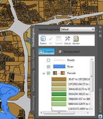 | Themen werden erstellt, indem der Stil basierend auf einem Attribut des Objekts variiert wird, beispielsweise unterschiedliche Farben für Parzellen abhängig von ihrer Größe. |