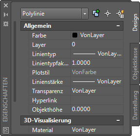 Sie können die Eigenschaften des ausgewählten Zeichnungsobjekts oder anderen Objekts in der Eigenschaftenpalette anzeigen.
