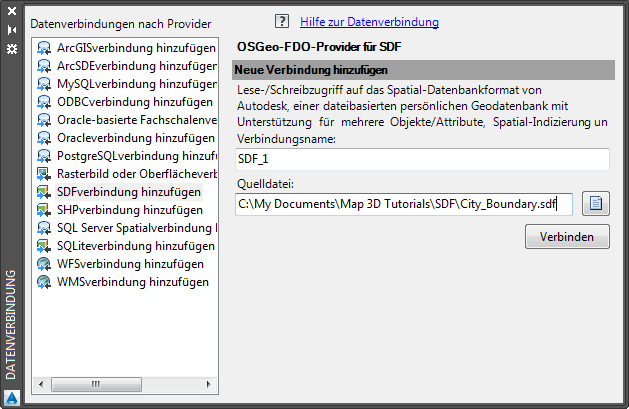 Wählen Sie den SDF-Provider aus, und navigieren Sie zur Beispieldatei CITY_BOUNDARY.SDF.