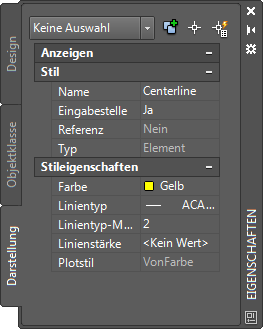 | Element | Gibt die Farbe, den Linientyp, den Linientypmaßstab, die Linienstärke und den Plotstil für Zeichnungsobjekte an, die diesen Stil verwenden. |