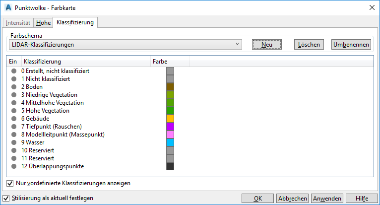 - Klassifizierung: Diese Option weist Punkten Farben auf Basis ihrer Klassifizierung zu.