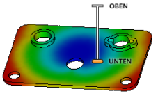 Die vertikalen Abstandsanzeige verfügt über zwei Markierungen, die die höchste (OBEN) und niedrigste (UNTEN) mögliche Einstellung für die Ansicht angeben. Während Sie die Höhe mithilfe der vertikalen Abstandsanzeige verändern, zeigt eine helle, orangefarbene Anzeige die aktuelle Einstellung und eine gedimmte, orangefarbene Anzeige die vorherige Einstellung.