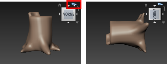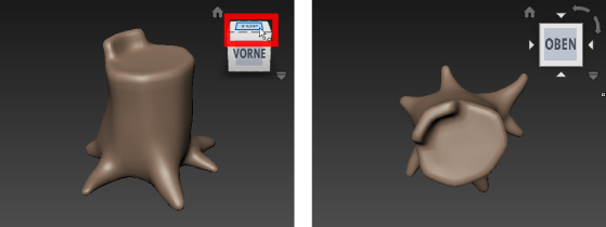 Ihr Blickpunkt auf die Szene ändert sich und entspricht dem Bereich des ViewCube, den Sie ausgewählt haben.