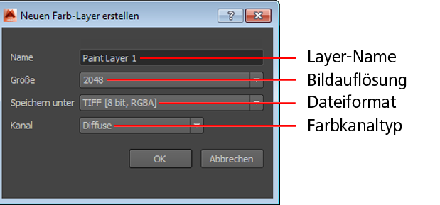 - Führen Sie im Fenster Neuen Farb-Layer erstellen die folgenden Schritte aus, und klicken Sie dann auf OK: