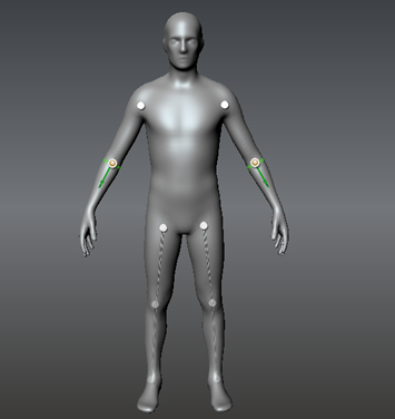 Beim Platzieren des Gelenks versucht Mudbox standardmäßig, es im Volumen zu zentrieren. Auf diese Weise kann ein Gelenk schnell und einfach von jedem beliebigen Punkt in der 3D-Ansicht aus positioniert werden. Außerdem bietet diese Funktion als Vorgabe eine gute Ausgangsposition für die meisten Situationen.