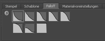 Wie die Gewichtungsfarbe mit zunehmendem Abstand zum Gelenk abnimmt, basiert zunächst auf der in der Palette Falloff gewählten Falloff-Kurve, wenn Sie das Werkzeug Gelenk erstellen wählen. Sie können den Falloff mit dem Werkzeug Gewichtungen weiter anpassen. (Siehe Anpassen des Werkzeug-Falloffs.) Die Falloff-Kurve dient als Hilfslinie entlang des Einflussbereichs, den Sie beim Ziehen des Gewichtungen-Vektors erstellen.
