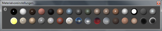 Beispiele für Materialeigenschaften: Farbe, Hochglanz und Transparenz. Ein Material kann außerdem durch die mathematischen Algorithmen kategorisiert werden, auf denen es basiert, z. B.: Blinn, beleuchtete Kugel usw.