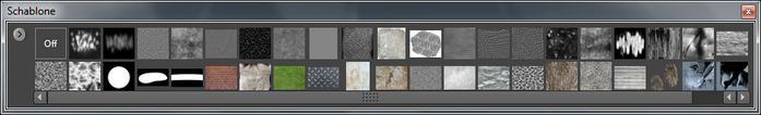 Schablonen funktionieren ähnlich wie in der realen Welt. Schwarzwerte im Schablonenbild verhalten sich wie undurchsichtige Bereiche, die das Modell vollständig schützen. Weißwerte können das Werkzeug passieren und so das Modell beeinflussen. Bereiche außerhalb des Schablonenbilds werden wie Schwarz betrachtet und bleiben unverändert.