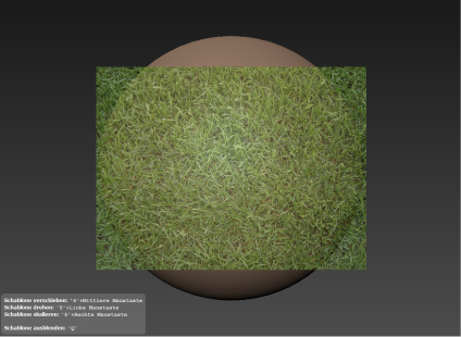 Während der Pinselstriche verschwindet die Grasschablone, und die Farbe wird entsprechend dem Stempelbild auf das Modell projiziert. Nach jedem Pinselstrich wird die Schablone wieder angezeigt.