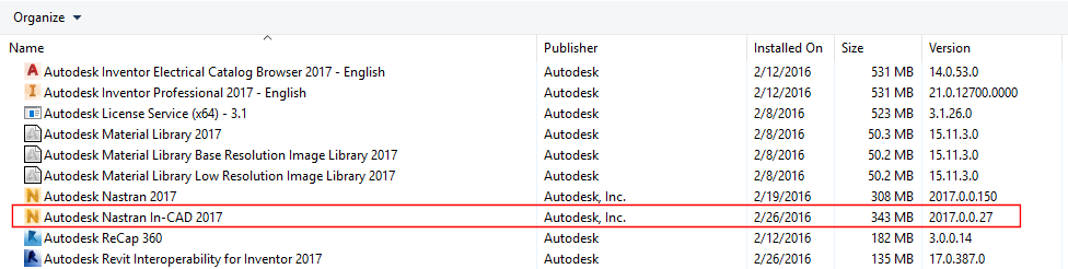 Um Autodesk Nastran In-CAD 20xx zu entfernen/deinstallieren, verwenden Sie wie unten beschrieben das Autodesk-Deinstallationswerkzeug oder Systemsteuerung/Programme deinstallieren.