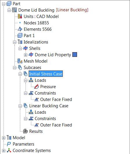 - Klicken Sie in der Bauteilstruktur mit der rechten Maustaste auf Subcase 1, wählen Sie Umbenennen, und geben Sie Initial Stress Case ein.