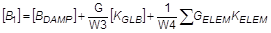In the second equation above, the first term contains terms from viscous damping elements (CDAMP). The second term is structural damping based on the global stiffness matrix multiplied by the overall structural damping coefficient, specified by PARAM, G. The third term is the structural damping matrix created when GE is specified on the MATi entries. The default values of 0.0 for W3 and W4 cause the second and third terms to be ignored regardless of the presence of PARAM, G. The units of W3 and W4 are radians per unit time. See also CB1, CB2. |