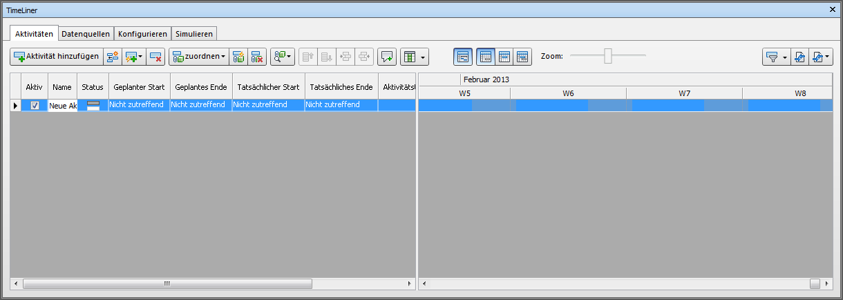 , und klicken Sie auf die Registerkarte Aktivitäten im Fenster TimeLiner.