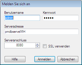 Tipp: Die Serveradresse ist der Name eines Computers in Ihrer Domäne oder eine IP-Adresse für den Server.