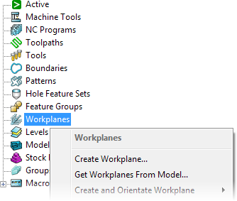 Arbeitsebene erstellen — Wählen Sie dies, um ein neues Koordinatensystem anzulegen. Die Arbeitsebeneneditor-Registerkarte steuert die Position und Ausrichtung der neuen Arbeitsebene.