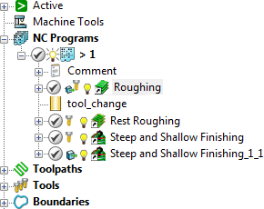 — Weist darauf hin, dass der Werkzeugweg mit einem NC-Programm verknüpft ist