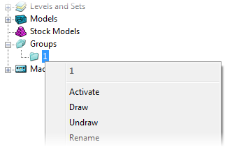 Kopieren als NC-Programme — Wählen Sie dies, um ein NC-Programm zu erstellen, das die Werkzeugwege in der Gruppe enthält. Das NC-Programm weist denselben Namen wie der Gruppe auf.