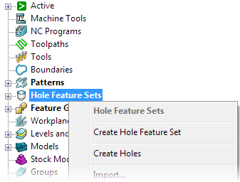 Bohrungen erstellen – Wählen Sie dies, um Bohrungen mithilfe des Dialogfelds Bohrungen erstellen anzulegen. Weitere Informationen finden Sie unter Bohrungen aus einem Modell erstellen.