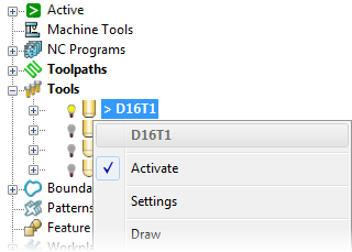 Ändern — Wählen Sie dies, damit die Option Werkzeug kopieren angezeigt wird. Wenn Sie ein Werkzeug kopieren, hat das neue Werkzeug denselben Namen wie das ursprüngliche Werkzeug mit dem Suffix _1. Sie können das neue Werkzeug ändern, indem Sie mit der rechten Maustaste auf das Werkzeug klicken und Einstellungen auswählen.