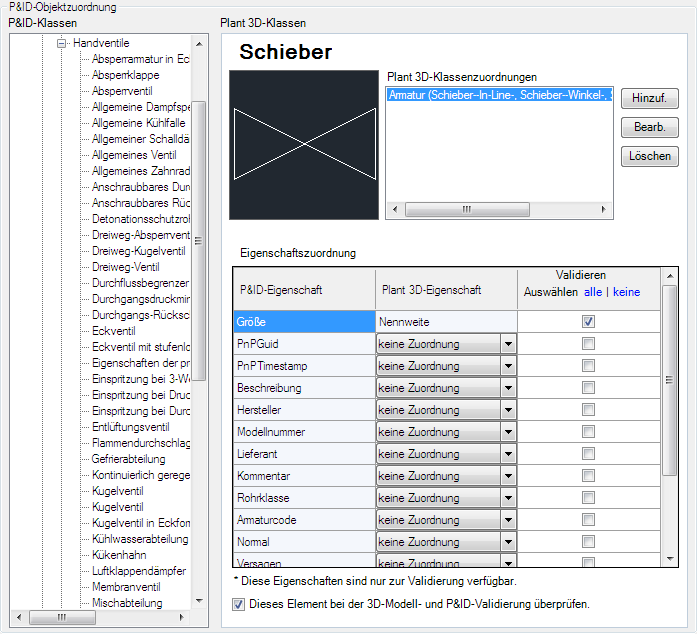 Um den Validierungsprozess so festzulegen, dass die Eigenschaften-Mappings dieses Elements ignoriert werden, deaktivieren Sie das Kontrollkästchen. Weitere Informationen zum Zuordnen und zur Validierung finden Sie unter "Wissenswertes über die Rolle von Tags bei der Validierung".