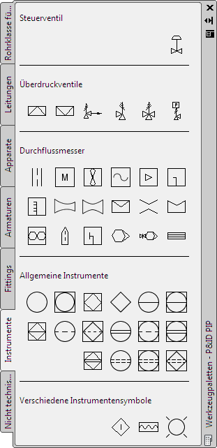 Instrumente fügen Sie wie jedes andere Element hinzu. Sie sind einem bestimmten Layer und einer bestimmten Farbe zugeordnet. Sie können die Steuerarmatur oder die Steuerarmatur (oben) nach dem Hinzufügen eines Instruments zu einer Zeichnung ersetzen.