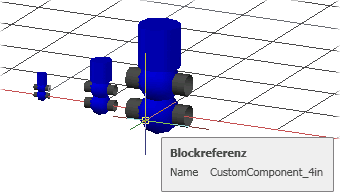Anmerkung: Eine blockbasierte Komponente kann mit Hilfe von plantcustomparts als Spezialkomponentenmodell (nicht in der Rohrklasse enthalten) verwendet werden. Um eine blockbasierte Rohrklassenkomponente zu erstellen, können Sie den Rohrklassen- und Katalog-Editor verwenden.