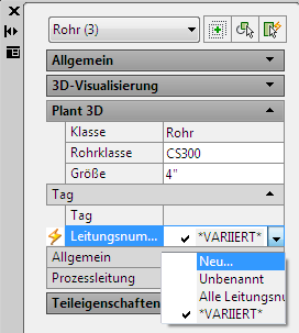 3. Wählen Sie in der Eigenschaftenpalette Plant 3D Tag Leitungsnummer-Tag.