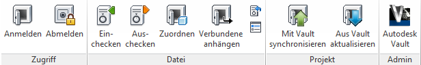Sie können Ihre Vault-Sitzungen und Vault-Projektdateien über die Multifunktionsleiste verwalten.