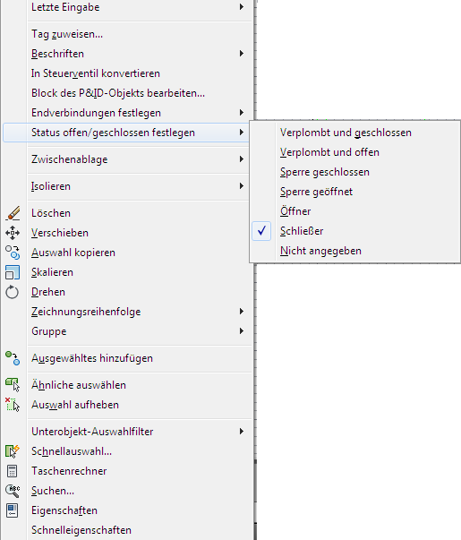 Anmerkung: Sie können Anschlüsse und den geöffneten oder geschlossenen Zustand auch in der Eigenschaftenpalette oder im Datenmanager festlegen.