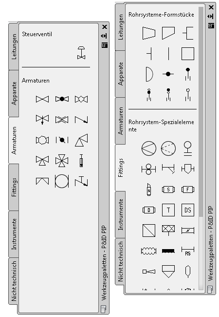 Einbaukomponenten wie Ventile und Reduzierstücke werden auf Rohrleitungen platziert.