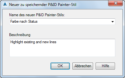 4. Geben Sie im Feld Name des neuen P&ID Painter-Stils einen neuen Namen ein (z. B. Farbe nach Status).