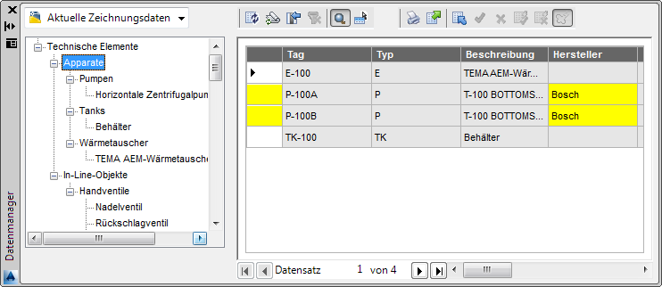 1. Klicken Sie in der Strukturansicht des Datenmanagers auf den Knoten, der die importierten Änderungen enthält (gelb markiert).