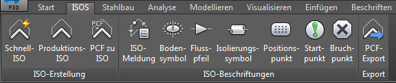 Die Registerkarte ISOs ist Teil des 3D-Rohrleitung-Arbeitsbereichs.