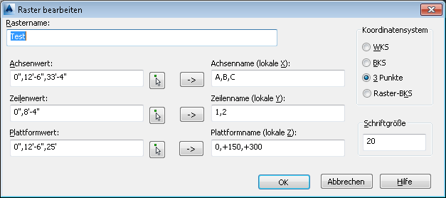 Gibt den Achsennamen an, wie über die Schaltfläche Punkt wählen eingegeben oder definiert.