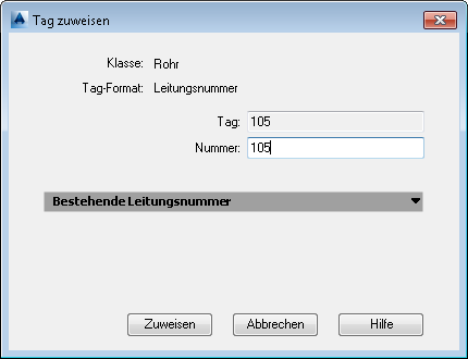 - Geben Sie im Dialogfeld Tag zuweisen in das Feld Nummer die Leitungsnummer ein (z. B. 105).