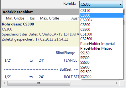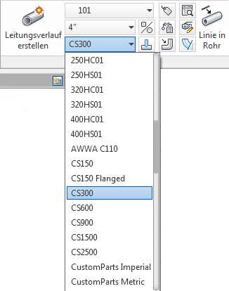 Klicken Sie in der Dropdown-Liste auf eine Rohrklasse (z. B. CS300).