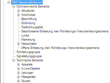 Erweitern Sie in der Projektkonfiguration-Strukturansicht die P&ID- oder Plant 3D-Klassendefinitionen.