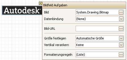 - Klicken Sie auf das vorhandene Autodesk-Logo, um es auszuwählen. Klicken Sie auf den kleinen Pfeil oberhalb des ausgewählten Logos.
