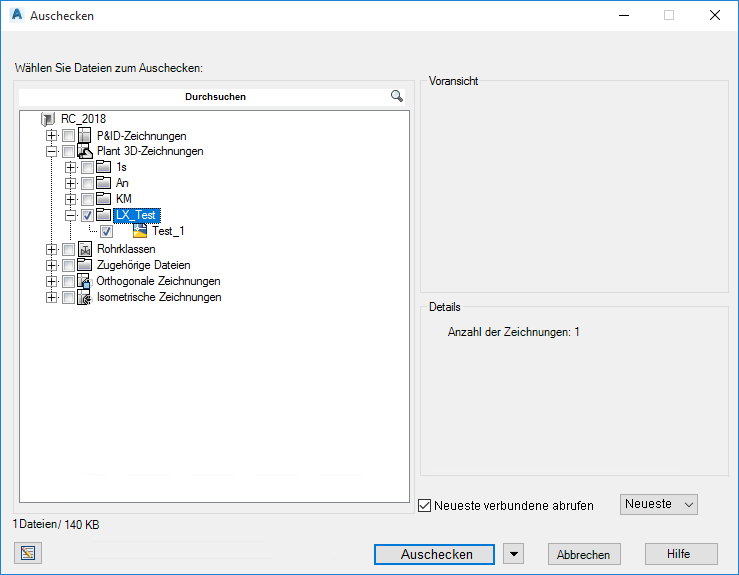 - Wenn die Zeichnung Referenzen zu anderen Zeichnungen enthält (Vault-bezogene Dateien), können Sie diese auswählen, sofern sie nicht bereits ausgecheckt wurden.