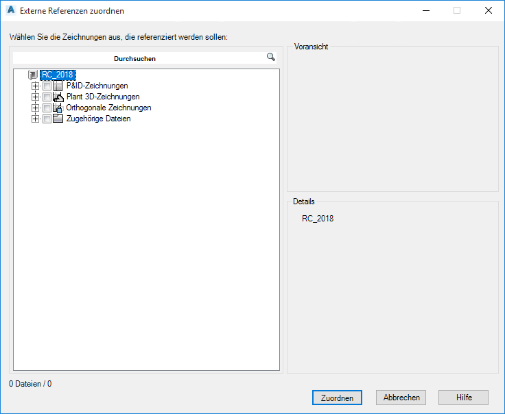 Anhängen. Das Dialogfeld Externe Referenz zuordnen wird angezeigt.