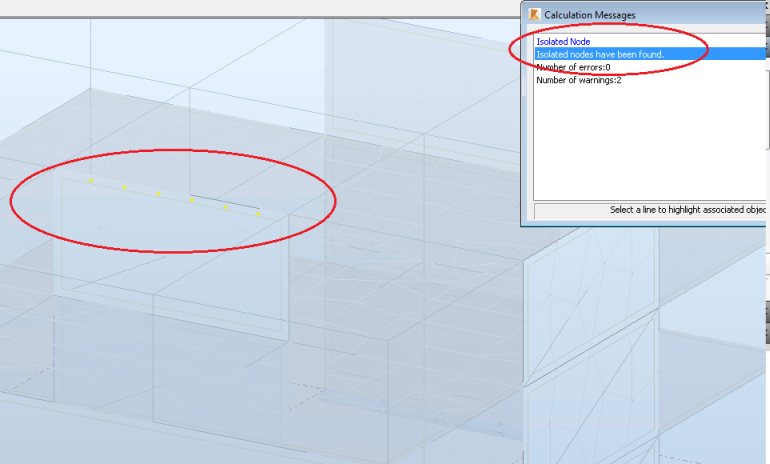 Simply click a line in the Calculation Messages dialog to highlight the corresponding problem in the view.