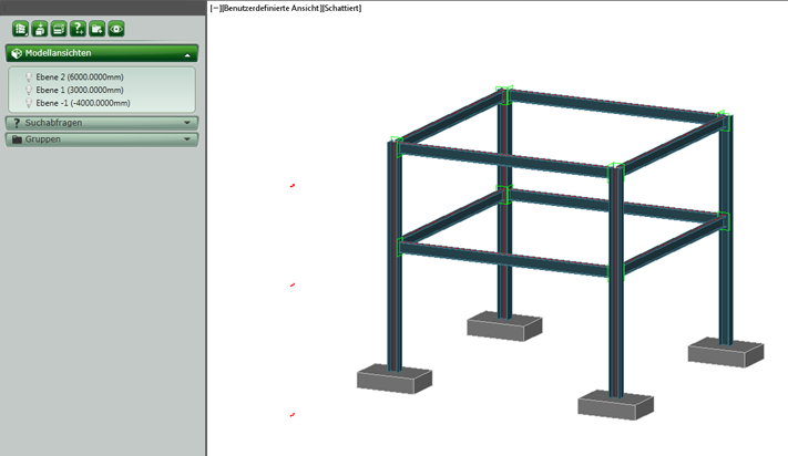 Ebenen werden mithilfe der Erweiterung zwischen Revit und Advance Steel übertragen. Bei der Übertragung wird die Höhe der Ebene und die Ebenenverknüpfung für Objekte beibehalten.