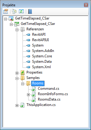 Navigieren Sie außerhalb der IDE in Windows Explorer zu den Revit-Installationsordnern, und suchen Sie den Ordner AppHookup. Beachten Sie, dass die entsprechenden Unterordner \Samples\Rooms unter diesem Pfad erstellt wurden.