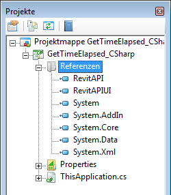 In diesem Beispiel enthält der aktualisierte IDE-Projektexplorer für GetTimeElapsed_CSharp die folgenden Einträge: