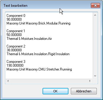 - Bauteilbeschreibung: Liste der Wandbauteile, deren Materialien und Größe
