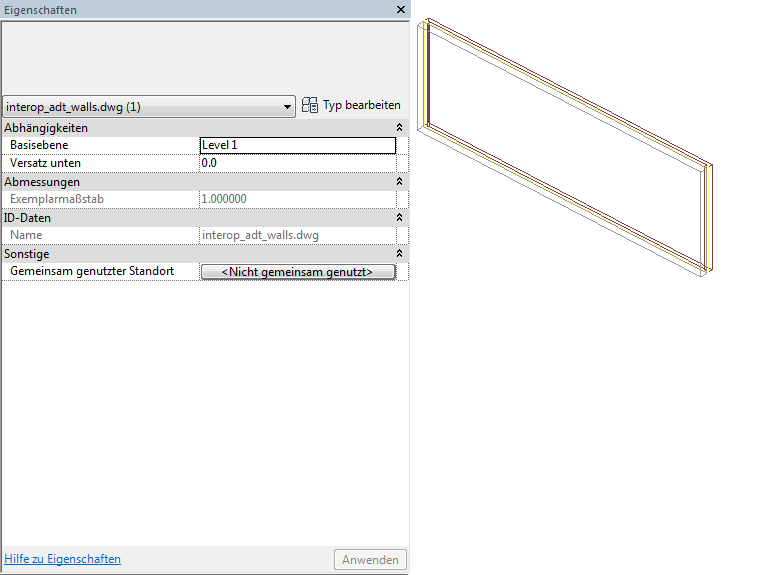 Die folgenden Eigenschaften werden der importierten Wand hinzugefügt: