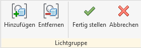 Verwenden Sie den Lichtgruppeneditor zum Hinzufügen oder Entfernen von Lichtern in einer Lichtgruppe.