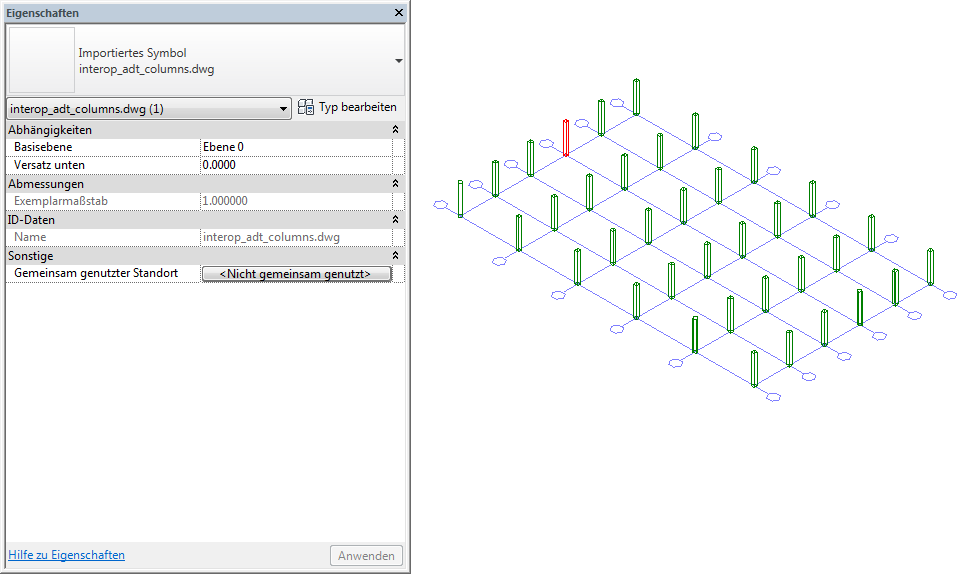 Aus importierten AutoCAD Architecture-Stützen erstellte Revit-Stützen