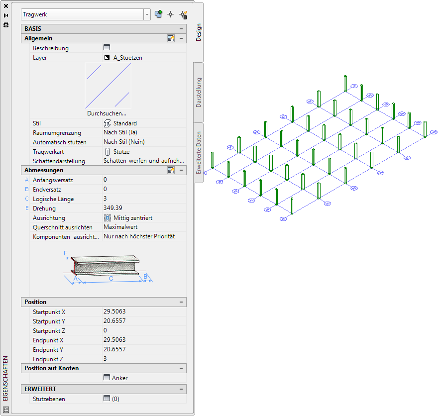 Stützen, Träger und Streben sind die Tragwerksteile in einem Gebäude. Sie können in AutoCAD Architecture erstellt und in Revit als Referenz importiert werden.