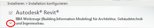 - Klicken Sie erneut auf den Pfeil für die Autodesk Revit-Inhaltsbibliotheken, um die Konfigurationseinstellungen auszublenden.